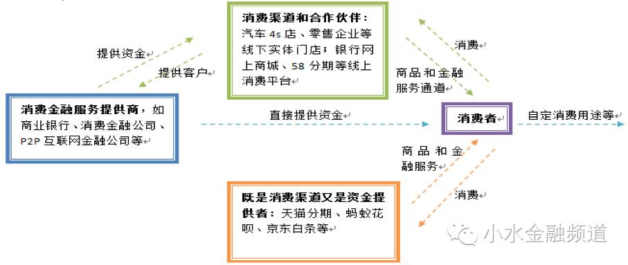 在消费金融提供商方面,主要包括商业银行、消费金融公司、小贷公司、支付平台和各类消费公司,其中消费公司包括零售企业、汽车企业、房产企业、航旅企业、教育留学等其他参与主体。